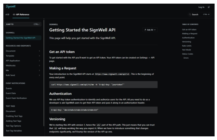 SignWell’s real differentiator is the API. The REST API supports embedded signing, webhook notifications, white-label workflows, and full programmatic document control. It’s well-documented and straightforward to implement, even if you’re inexperienced with custom integrations.